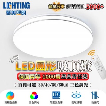 【聚美照明】吸頂燈 1-3坪 Led吸頂燈 臥室燈 調光吸頂燈 超薄吸頂燈 節能燈 三色變光附遙控(品牌保固)40CM 2400lm 節能款