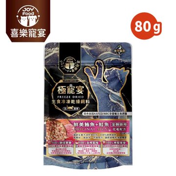 點我下載【Joy Food 喜樂寵宴】極寵宴生食凍乾貓飼料-鮪魚+鮭魚(全齡貓適用) 80g