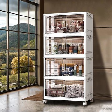 60面寬升級內崁式透明側板前開式折疊四層收納櫃-附滑輪 024443 60面寬四層-透明面板