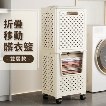 【 好氣氛家居】雙層折疊加寬手提式收納附輪髒衣籃/洗衣籃(收納籃 浴室收納)