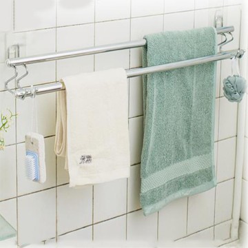 泰衛 輕鬆黏304不鏽鋼雙桿毛巾架80公分