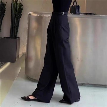 韓系女裝 雙釦垂墜直筒西裝落地褲 C2527