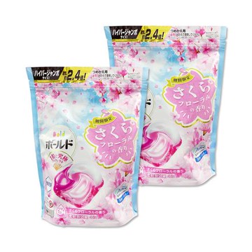 (2袋52顆超值組)日本P&G-Bold強洗淨4合1消臭柔軟香氛洗衣凝膠球26顆/袋-櫻花香(粉藍)(期間限定洗衣膠囊,衣物柔順好熨燙,全洗衣機適用)
