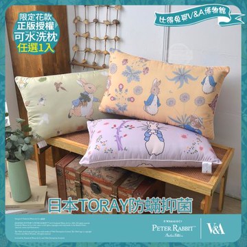 【PETER RABBIT 比得兔】比得兔與V&A博物館 日本TORAY防蹣抑菌可水洗枕-任選(1入/台灣製/抗菌枕/枕頭)
