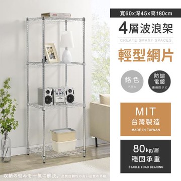 【AAA】MIT耐重鐵力士 輕型四層電鍍置物架 - 60x45x180cm (鉻色)