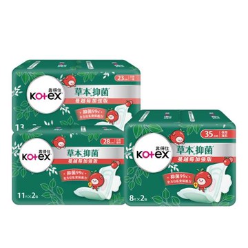 【Kotex 靠得住】草本抑菌加強版 衛生棉 日用23cm 夜用28cm/35cm (12包/組)