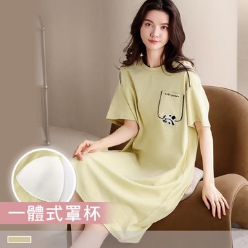 Pink Lady 純棉 罩杯式 莓果兔園 短袖睡裙 棉柔 春夏 圓領 印花 柔感 女睡衣 居家服 55107