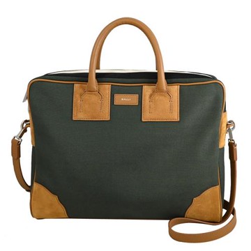 BALLY 6305061 BORD 燙銀LOGO帆布絨面皮革兩用公事包.綠/咖