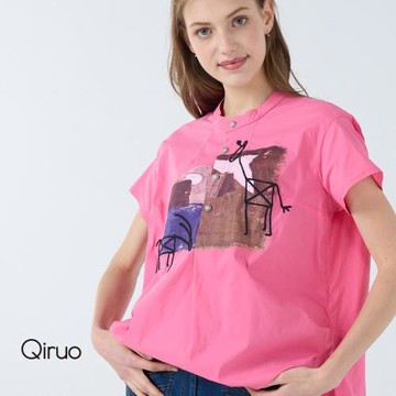 【Qiruo 奇若】春夏專櫃粉色短袖上衣1803A 小立領扣子