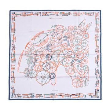 點我下載Hermes 愛馬仕 Complication Equestre 90 手工捲邊斜紋真絲方巾(淡粉/橘/卡其)