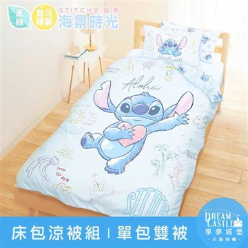 享夢城堡 MIT精梳棉單人床包枕套3.5x6.2二件組-迪士尼史迪奇Stitch 陽光沙灘-藍