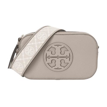 TORY BURCH mille浮雕TB皮革雙層斜背相機包(淺褐)小款
