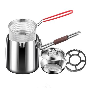 304不鏽鋼小型油炸鍋 帶濾網 家用省油 炸薯條/雞塊 附夾子 12.5cm 銀色 1個