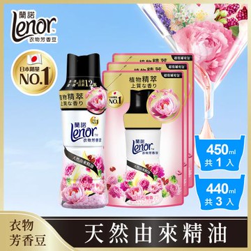 【官方直營】Lenor 蘭諾 衣物芳香豆/香香豆/芳香顆粒 1+3件組 (450mlx1瓶+440mlx3包) (甜花石榴香)