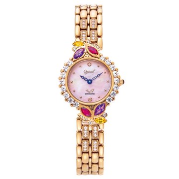 Ogival 愛其華 幸運虹彩天然寶石圓形珠寶錶 380-10DLR 玫瑰金粉面