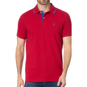 US Polo 2023男時尚小馬球造型領合身款紅色短袖POLO