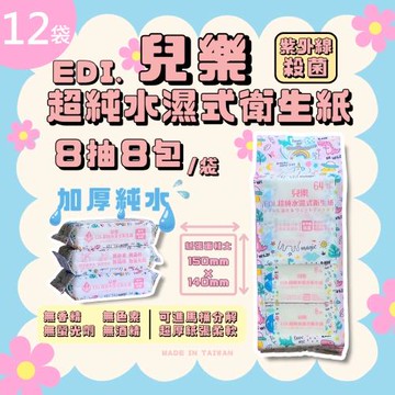 【力隆】兒樂超純水濕式衛生紙(小恐龍款|8抽x8包/袋)12袋組|溫和親膚,可丟馬桶,EDI超純淨高標準用水