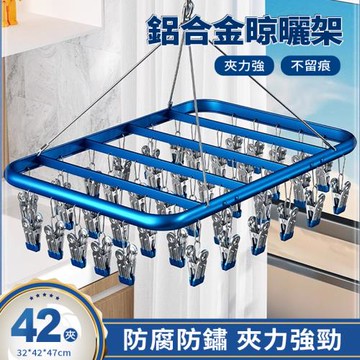 多功能鋁合金晾曬架30夾 藍色