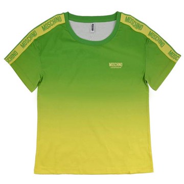 MOSCHINO 電繡織帶LOGO漸層撞色棉質短T恤.綠/黃