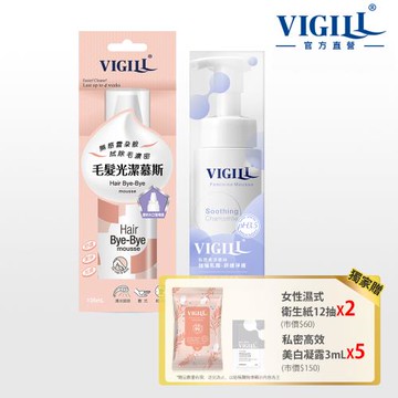 【VIGILL 婦潔】輕柔理毛慕絲嫩白組(光潔慕斯x1+私密柔淨慕絲x1+美白凝露3mLx5+女性衛生紙x2)-三款任選