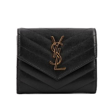 YSL 山形紋荔枝皮金字logo三折短夾(黑色)
