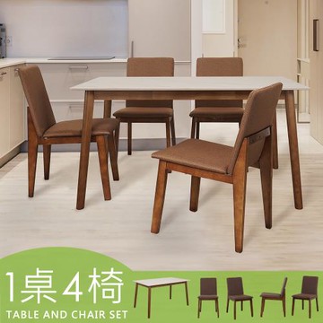 Homelike 喜家居140cm白岩板胡桃餐桌椅組(一桌四椅)(2517-66)