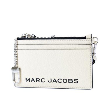 MARC JACOBS 黑字LOGO荔枝紋手掛拉鍊證件/零錢包-白色