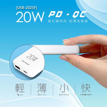 [寶旺旺]聖岡科技 20W氮化鎵快衝超薄充電器USB-202SF