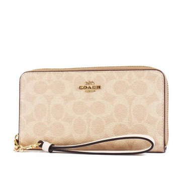 COACH-烙印馬車滿版PVC皮革 L型拉鍊手拿包(淺卡其x膚槓)