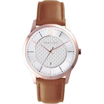 Relax time 石英款 立體格紋時尚男錶 -玫瑰金 (RT-118-3M) 42mm