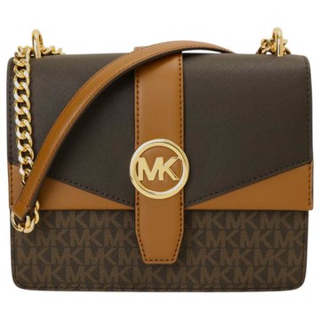 點我下載MICHAEL KORS-金牌MK 防刮皮革磁釦斜背包(深咖x駝)小款