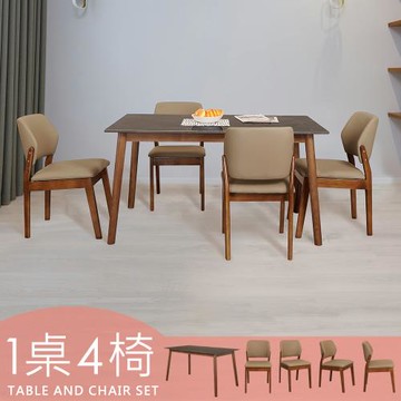 【Homelike】喜家居胡桃實木可延伸餐桌椅組(一桌四椅)(2529-24)