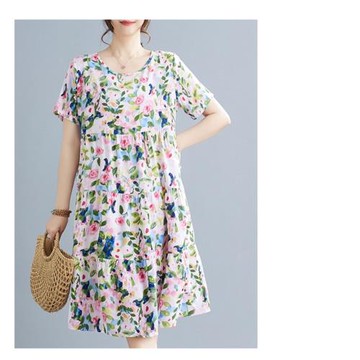仿棉 2023新款都市休閑沙灘裙吊帶型寬松腰3d印花連衣裙女數碼印