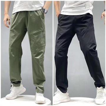 2025早秋拉鏈口袋休閑褲寬松直筒闊腿長褲子男裝運動工裝褲傘兵褲