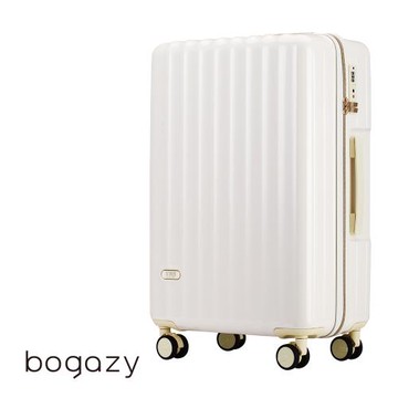 Bogazy 雅典美爵 20吋鏡面光感海關鎖可加大行李箱(奶油白)