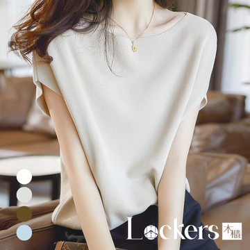 【Lockers 木櫃】春季莫代爾蝙蝠袖針織衫短袖 L112031301