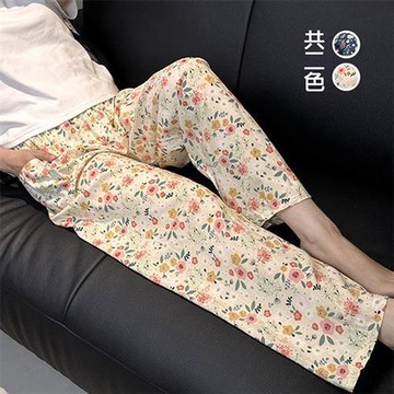 夏季新款棉綢睡褲女士薄款大碼人造綿綢可外穿家居碎花長褲子寬松