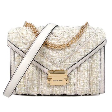 MICHAEL KORS 乳白色金蔥毛呢鏈帶翻蓋肩斜兩用包