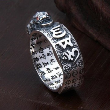 【巴黎精品】現貨+預購 S925手工純銀戒指足銀泰銀戒子男尾戒情侶對戒情人節禮物-貔貅心經男女飾品a1kj35