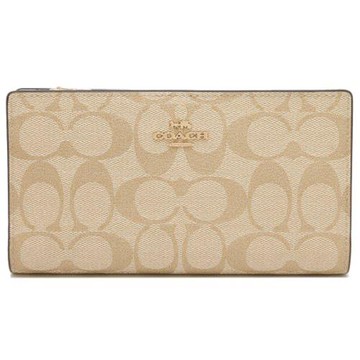 COACH C8714 經典印花LOGO多卡扣式拉鍊長夾.卡其
