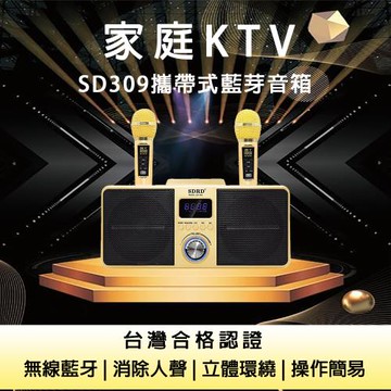 SD309攜帶式藍牙音箱 贈行動電源+防噴套+充電頭(家庭KTV 無線藍牙音響)