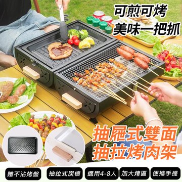 【APEX】抽屜式雙面抽拉烤肉架_含烤盤