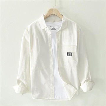 撿漏外貿男裝白色襯衫男士春秋款寬松休閑外套純色翻領長袖襯衣