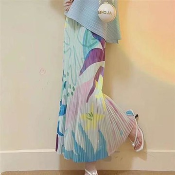 復古萬花筒印花 三宅風手工壓褶超短半裙