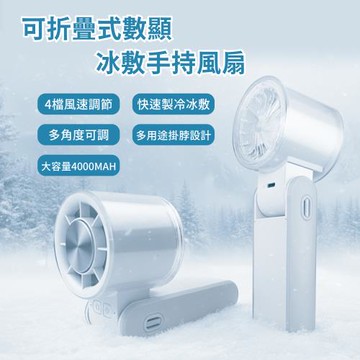 可折疊式數顯冰敷手持風扇-多色可選 白色