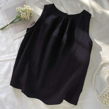 微澎感拼接背心 亞麻 水洗黑