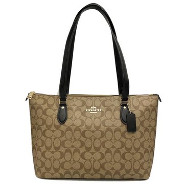 COACH 經典C LOGO印花拉鍊肩背托特包/購物包(駝/黑邊)