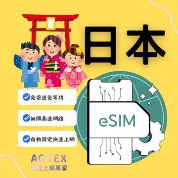 限時優惠!【AOTEX】eSIM日本3天無限高速網路吃到飽兌換券(MO)