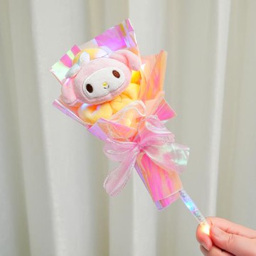 【台灣現貨】玩偶仙女棒發光花束 永生花束 娃娃花束 美樂蒂(交換禮物 畢業禮物 情人節 生日)