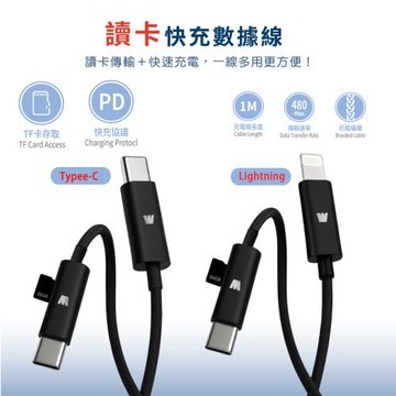 Wephone 讀卡PD充電傳輸線(讀卡機/PD快充/高速傳輸/隨插即用)100公分